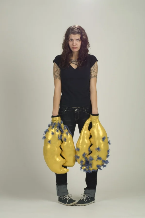 spandex, copper, found gloves, yarn, polyester stuffing, thread