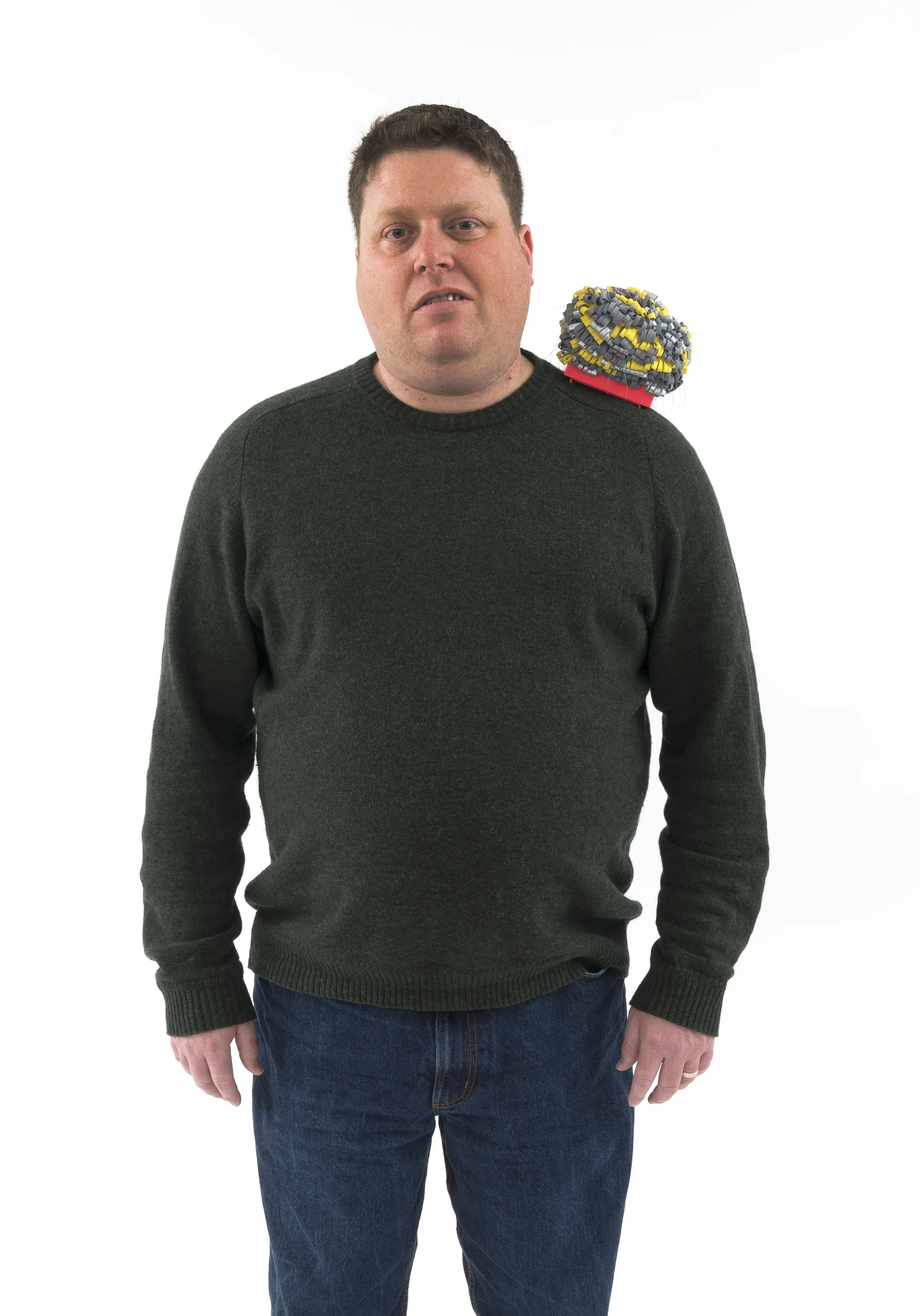 spandex, thread, polyester stuffing, powder coated brass, stainless steel, squeaker